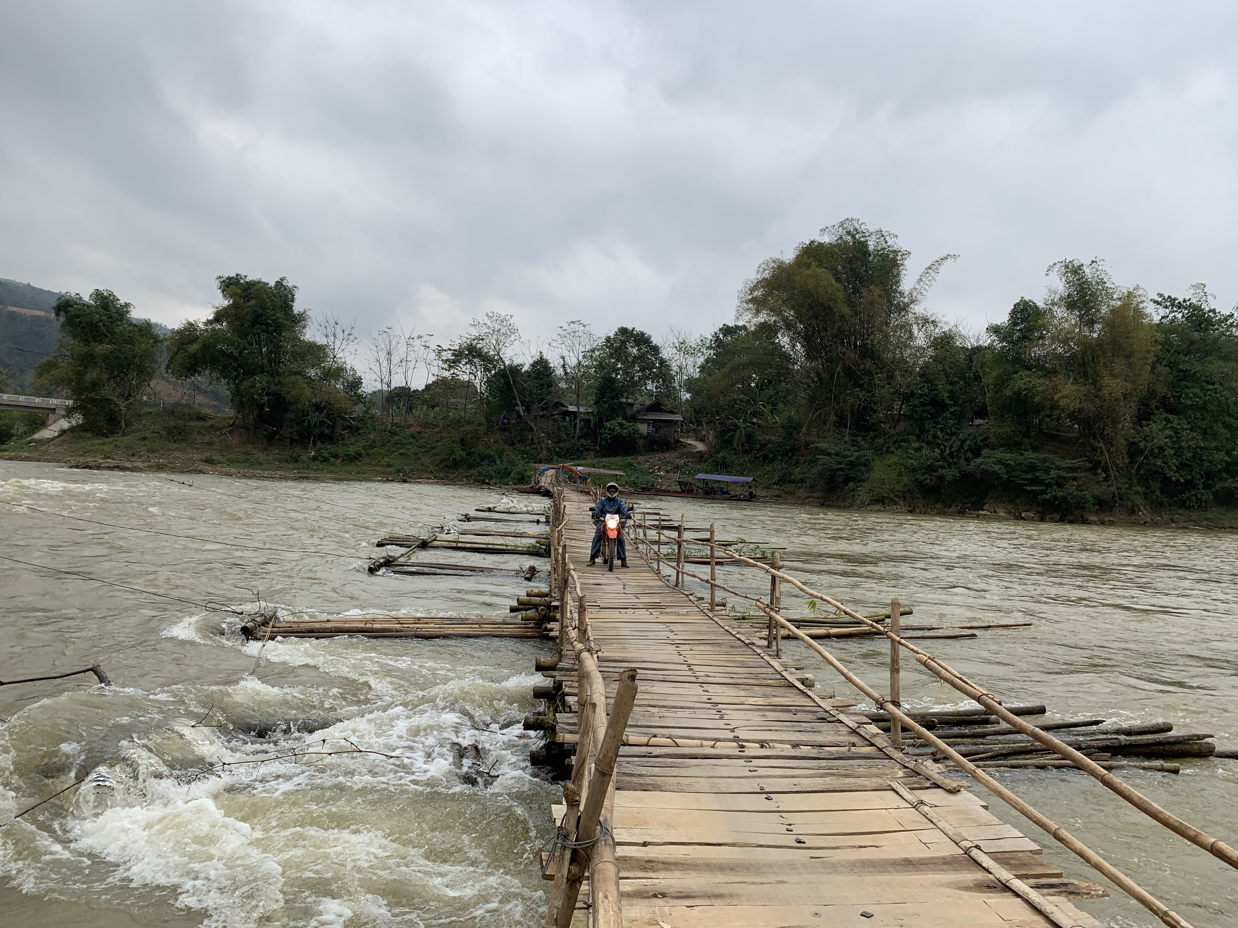For most of the day we drove 40 miles an hour so it was very relaxing. We crossed this bridge which was really cool but scary. We were on our way to Sapa – a place I have wanted to visit since my last trip to Vietnam. As the elevation increased we ended up in major fog. The road turned very rough which kept our speed down. I could barely see my guide’s tailight. It was very hard to keep up as there was lots of traffic. Vietnam drivers are the best in the world and make NY city taxi drivers look like sissies. Everyone passes everyone. They are very impatient and always start to pass even with oncoming traffic in the hopes that the oncoming traffic either slows up or moves over. They even pass around blind corners and you pray to God if there is a vehicle coming it is a motorbike not a truck. I had a somewhat of a close call when passing a truck in the fog and all of a sudden there was a van coming. I braked quickly and was able to merge back into my lane. As the van driver passed by he was yelling at me. I am pretty sure it wasn’t God bless you! There were cars going very slow due to the holes in the road. Our bikes were the best way to maneuver through the traffic.