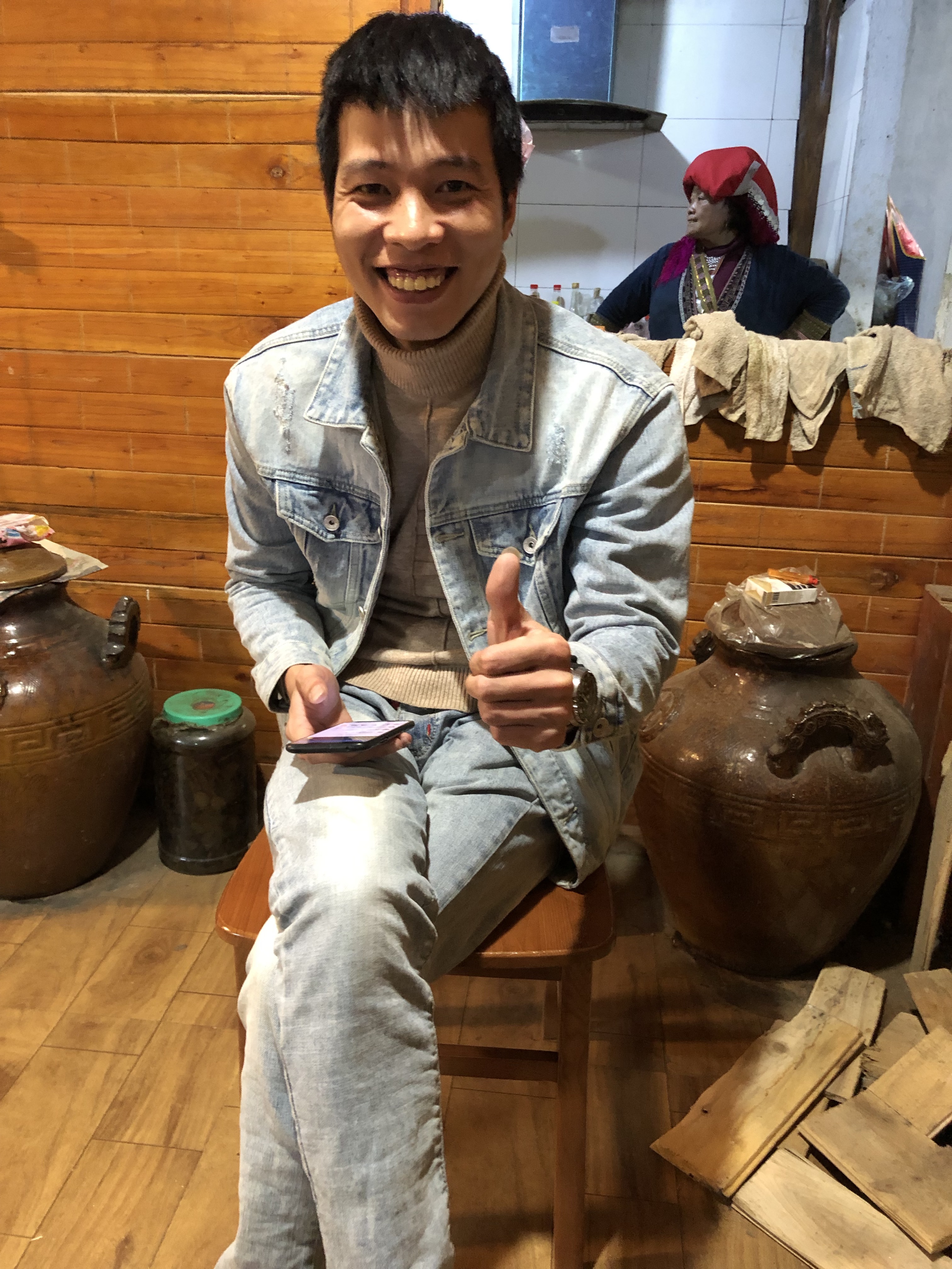 Up early with the roosters again, ate breakfast and hit the road with my new guide who is pictured above. His name is Lee. I am very fortunate to have such great guides. We left Sapa and it was very foggy although not as bad as the day we arrived. The road was very winding and had beautiful scenery only if I could see it. All of a sudden we broke out into the sun and had perfect visibility. It was as if God turned on a switch. I felt like one of those European motorcycle racers going in and out of the corners. (With that said, I can assure you my knee was more than an inch from the ground). Great fun! Also had some straight legs where I could go faster. Top speed on my 150cc Honda is about 70 miles per hour. While riding these roads you have to be very cautious because as you round the corners there may be a cow, child, chicken or dog in the middle of the road. One day I come upon a child sitting in the middle of the road. On another day there were flats of eggs stacked about 3 foot high in the middle of the road. Not sure why but you never know what you will see.