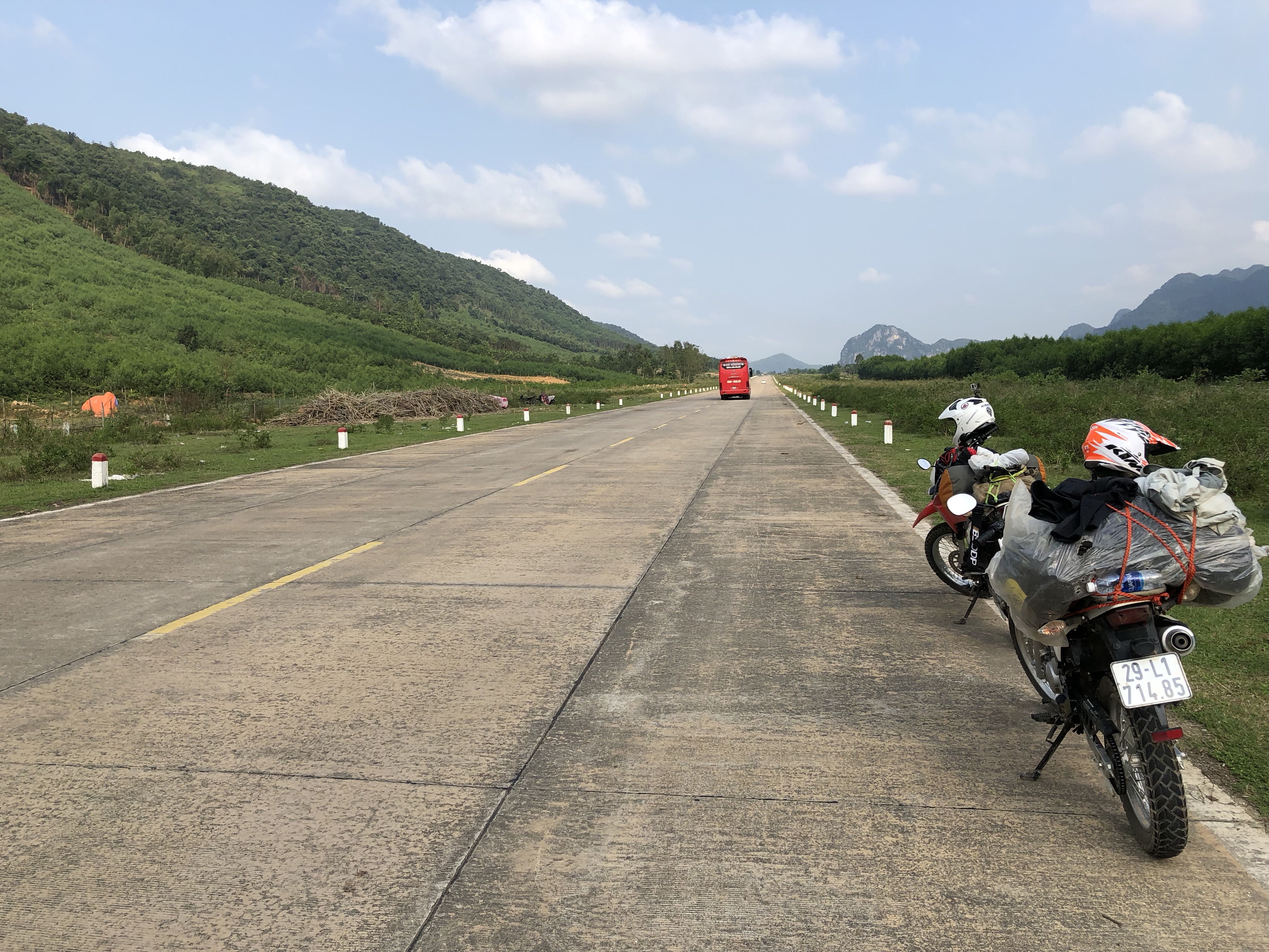 We were traveling on the Ho Chi Minh Road again and running about 60 miles per hour until noon. Then we were back into the mountains so we slowed up to handle the curves. We went about 170 miles today. As we continued south it got warmer. We had to stop and take off our coats. The high was around 83 degrees. It is going to be in the 90’s the next few days – especialy since we are south bound. Now this is what I call good motorcycling weather!