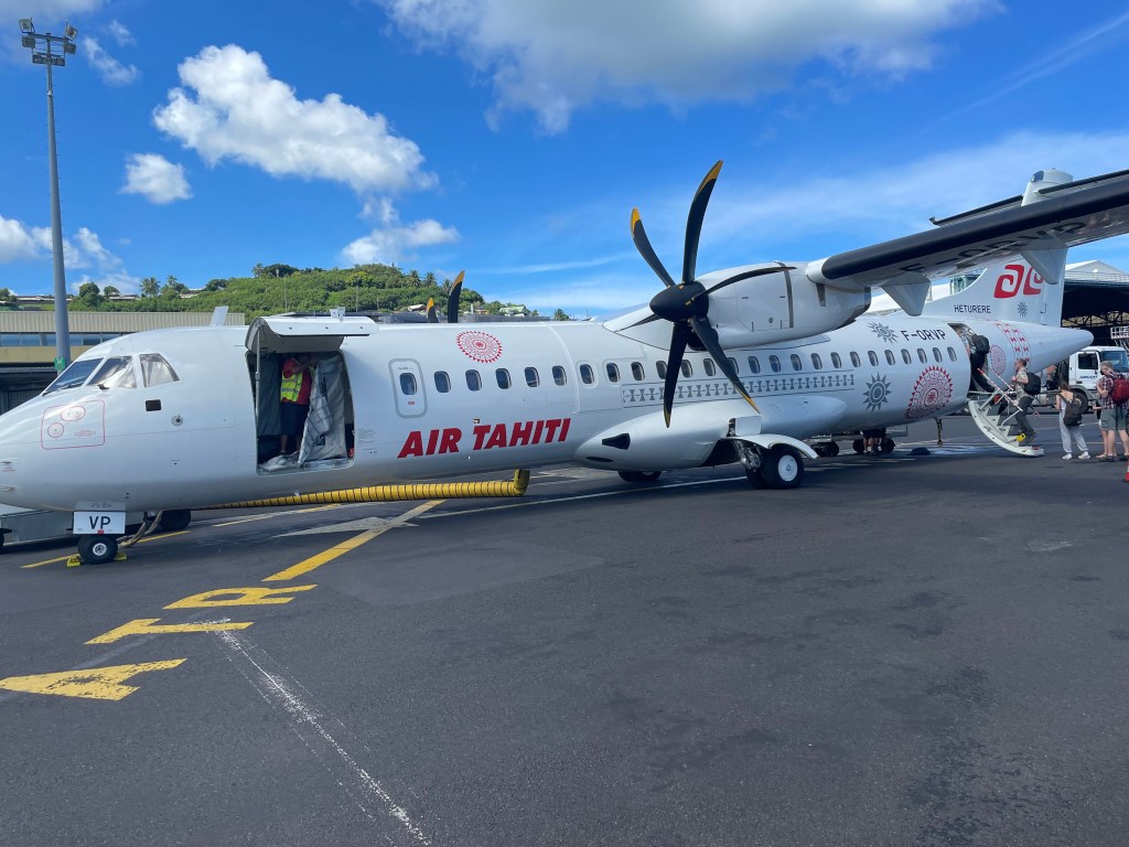Ia Orana (hello). We departed the Tahiti InterContinental Hotel at 9:10 with a shuttle to the Tahiti airport. Our flight to Bora Bora will be around 50 minutes long. While reading Air Tahiti’s magazine in the plane I learned that this airline flies to somewhere around 60 islands in this area – most of which I have never heard of. I would love to explore more of this part of the world.