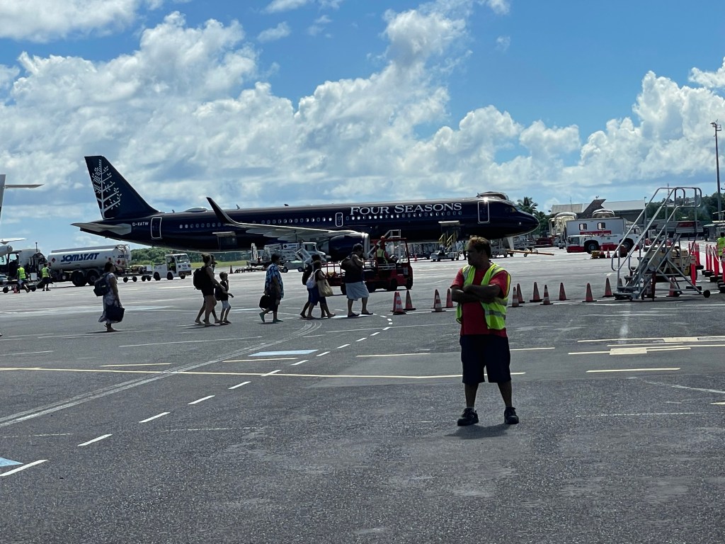 While boarding our plane on the outside tarmac, I saw a Four Season jet parked which I am sure is used for their private world tours. How cool would that be!