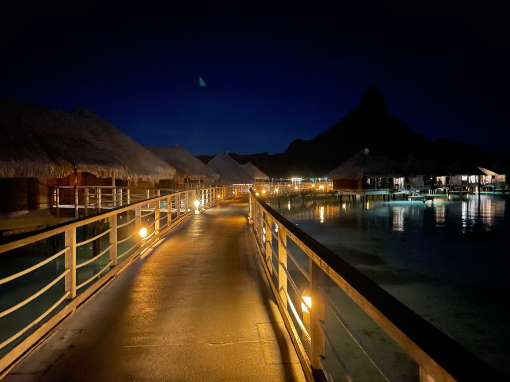 Walkway that leads to our room. It is very quiet here – especially at night. The water is very calm – great for snorkeling and swimming. The stars look amazing.